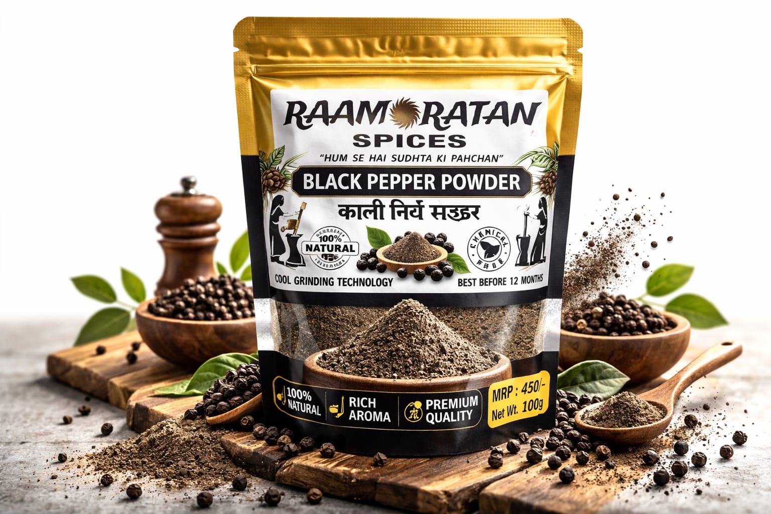 Raamoratan काली मिर्च पाउडर चुनी हुई बेहतरीन काली मिर्च के दानों से पारंपरिक तरीके से तैयार किया गया एक शुद्ध और प्राकृतिक मसाला है। इसका तीखा स्वाद और तेज खुशबू आपके हर खाने को और भी स्वादिष्ट और हेल्दी बनाती है।